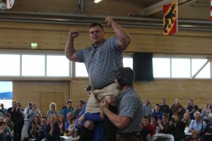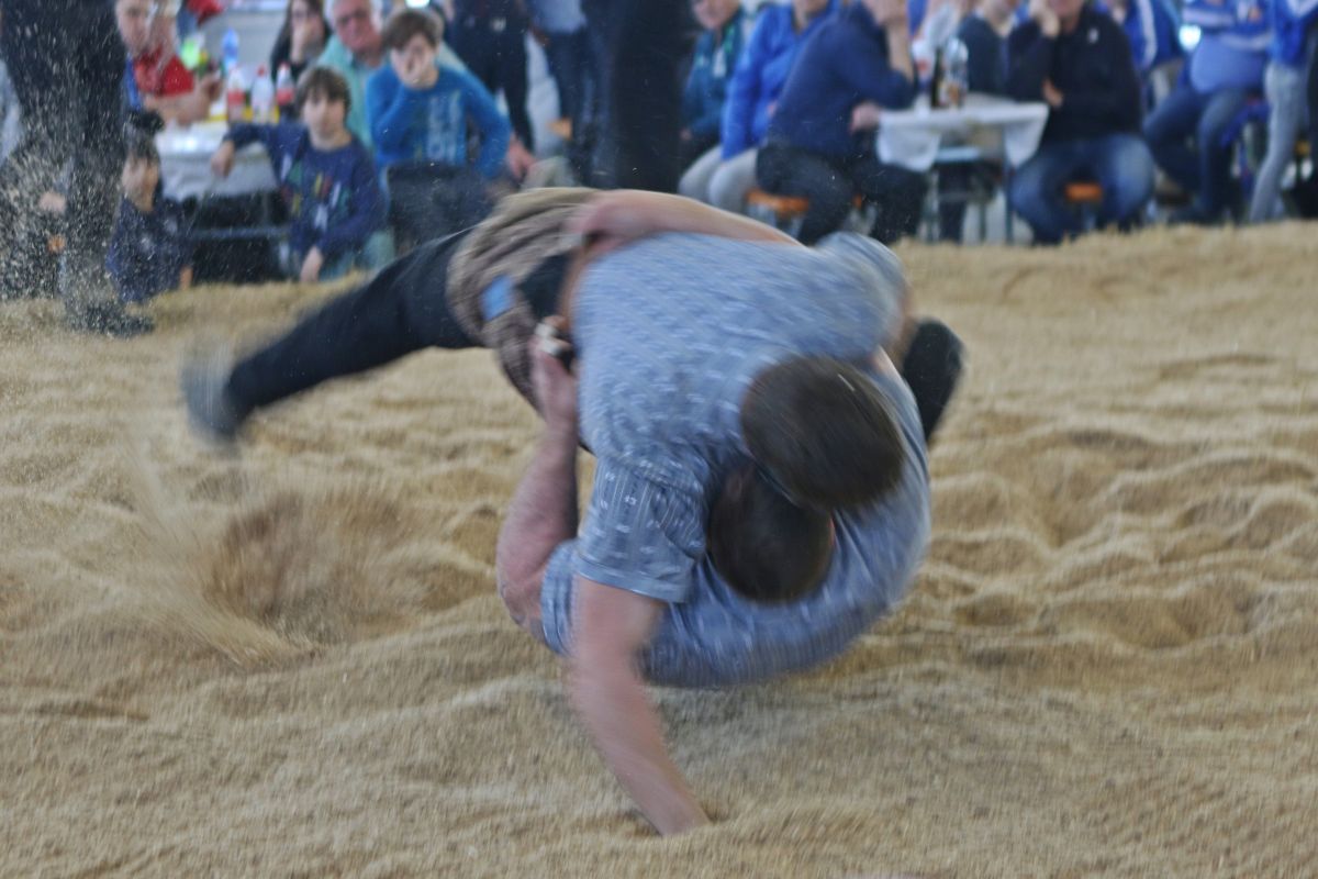 Räbmatter Patrick verliert den Schlussgang noch 3.40 min. und gewinnt dennoch dank seines Punktevorsprungs das 17. Hallenschwingfest in Brunegg. Herzliche Gratulation!