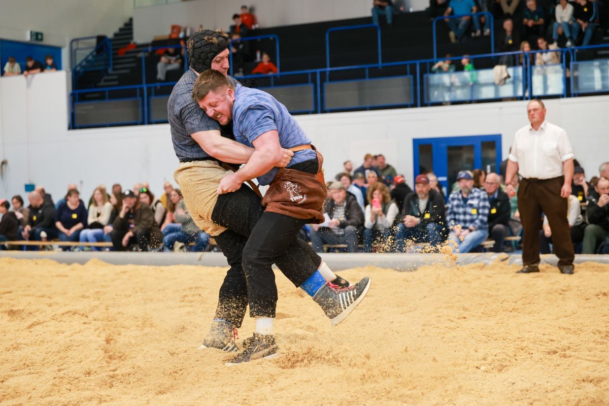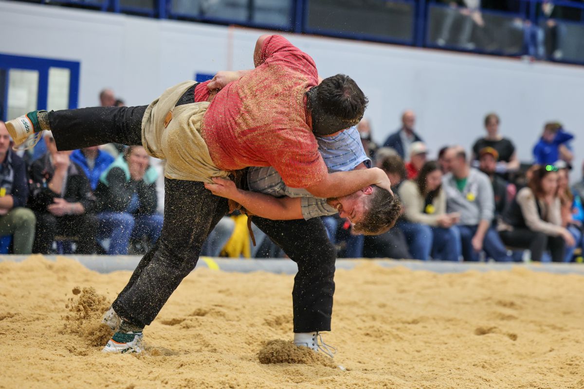 22.03.2026, Jahresschwinget Thun, Orlik Curdin (l.) - Rüegsegger Ueli (r.)