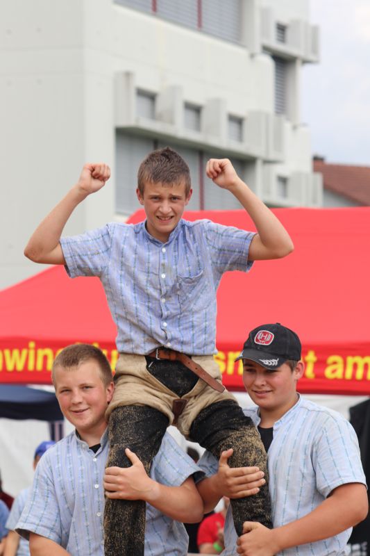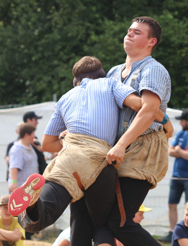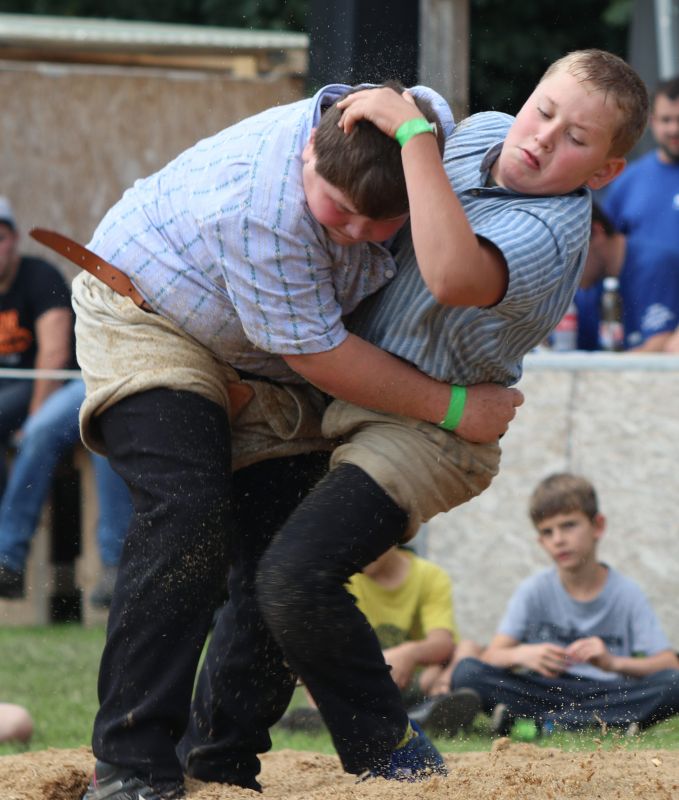 Bei den Jüngsten in der Kategorie E (2012-2013) durften am Ende des Wettkampftages der für den Schwingklub Einsiedeln antretende Kälin Patrick und der Nidwaldener Achermann Flavian beide mit jeweils 4 gewonnen und 1 gestellten Gang in den Schlussgang einziehen. Dabei konnte Kälin seinen Gegner mit einem Lätz zu Fall bringen und dann durch Nachdrücken am Boden auf den Rücken legen. Kälin gewinnt mit 58.50 Punkten.
