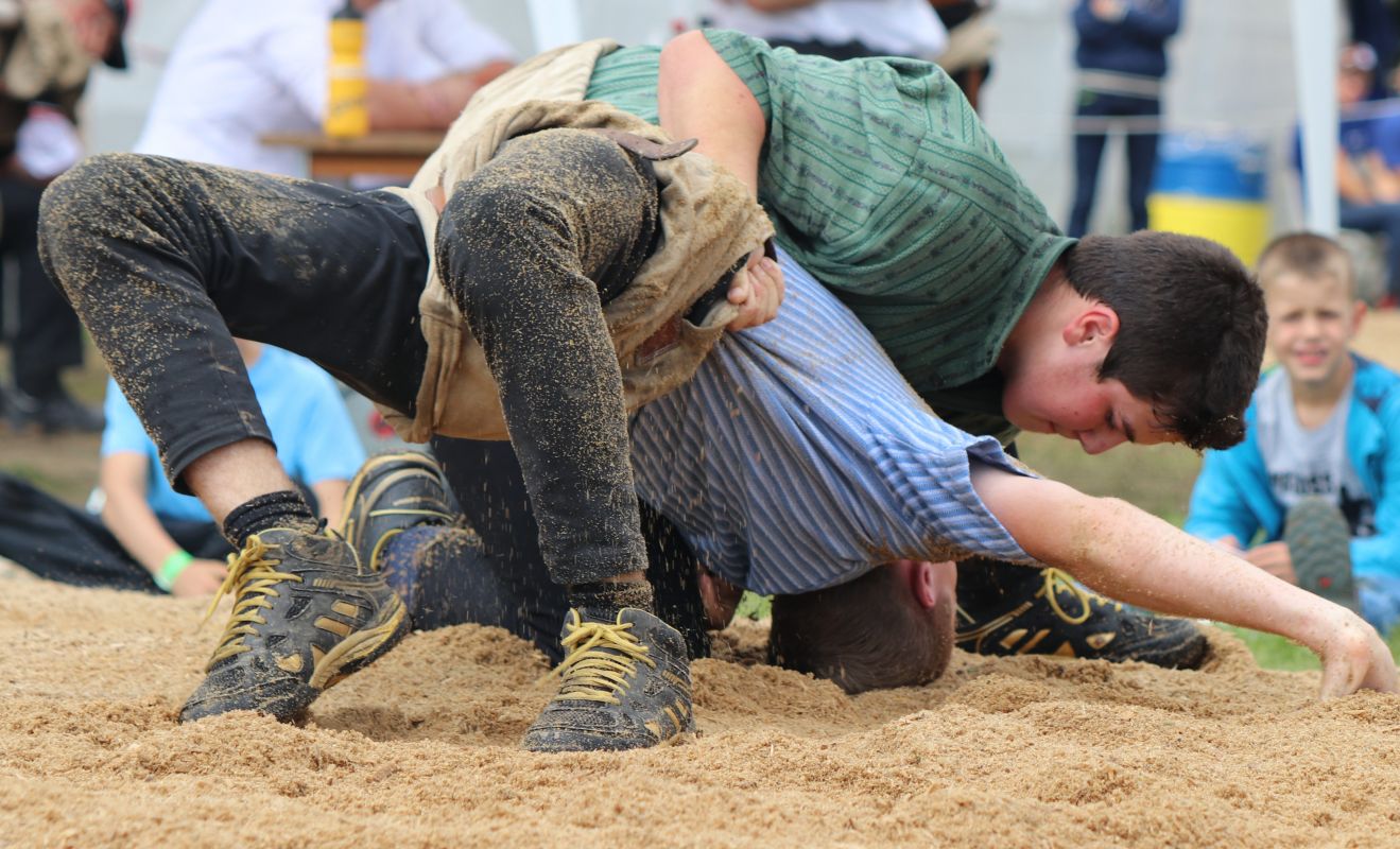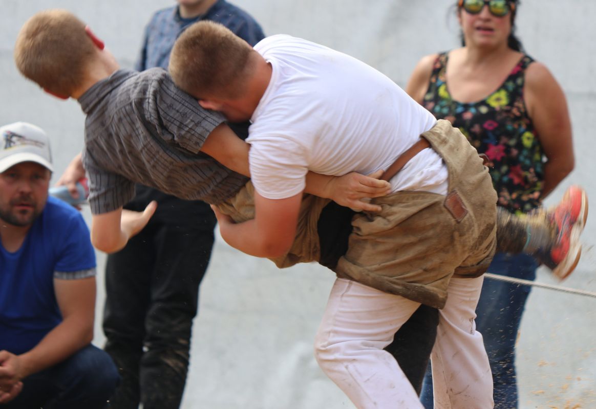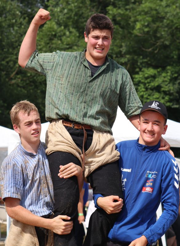 In der Kategorie B (2006-2007) standen sich gar zwei Klubkameraden gegenüber. So massen sich der aus Engelberg angereiste Hurschler Stefan und der aus Wolfenschiessen kommende Näfplin Urs (beide im Schwingklub Nidwalden) im Schlussgang. Mit dem Besseren Ende für Hurschler. Diese konnte nach einem Kurz und Nachdrücken am Boden seinem Kollegen Urs das Sägemehl vom Rücken wischen.