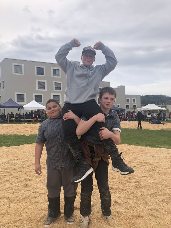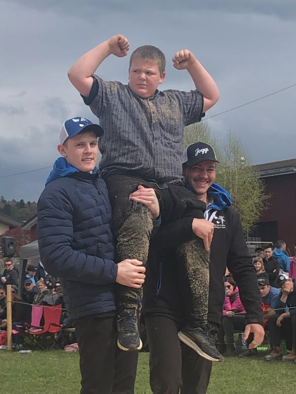 Girard Noé et Cardinaux Nathaël, tous deux du club des lutteurs de la Veveyse, n'arrivent pas à se départager en passe finale. Girard Noé est vainqueur de sa catégorie.