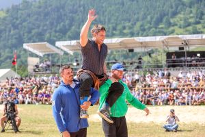Curdin Orlik (SK Frutigen) gewinnt im Schlussgang gegen Christian Biäsch (SV Davos) nach 4:35 mit Hüfter und gewinnt so das Bündner-Glarner Kantonalfest zum ersten Mal.