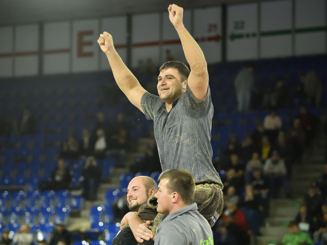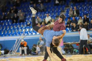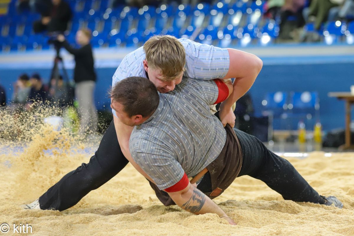 Der Schlussgang zwischen den beiden Eidgenossen Marcel Räbsamen und Nick Alpiger endet nach 10 Minuten gestellt. Dennoch darf sich Marcel Räbsamen als Sieger des 128. Berchtold Schwingets feiern lassen. Der Schwingklub Zürich bedankt sich bei 1300 Zuschauern.