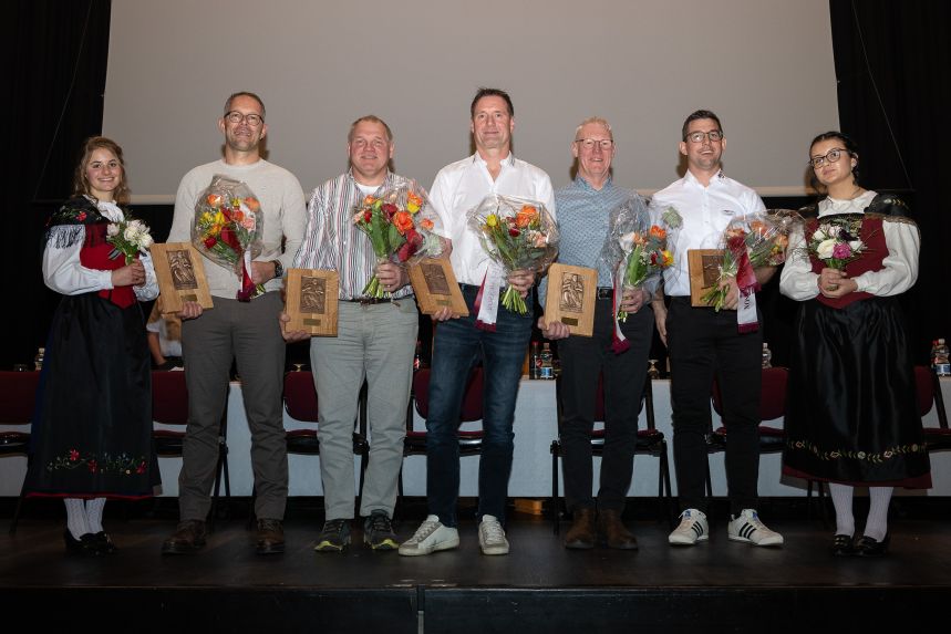Als bester Jungschwinger des Jahres 2024 durfte Marco Zaugg vom Schwingklub Siehen mit 12 Festsiegen ausgezeichnet werden. Ebenso Adrian Scheuner vom Schwingklub Thun als bester Nachwuchsschwinger mit 19 Festsiegen. Die zwei Festsieger vom Jubiläumsschwingfest in Appenzell Fabian Staudenmann und Fabio Hiltbrunner, Kilian Wenger für seine Schwingerkarriere und Bernhard Kämpf für seinen 100. Kranzgewinn konnten vom Technischen Leiter Roland Gehrig vor der versammelten Berner Schwingergemeinde noch einmal gebührend geehrt werden.