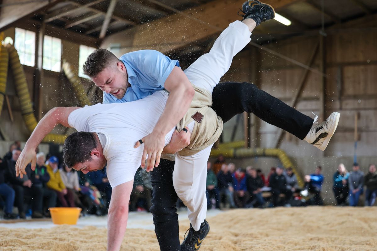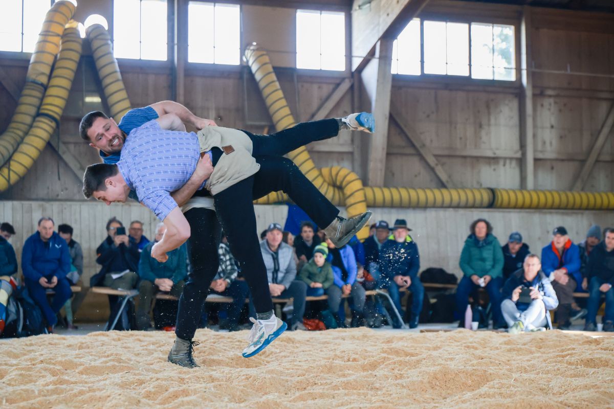 28.03.2026, Worblentaler Hallenschwinget, Laimbacher Patrik (v.) - Eymann Flurin (h.)