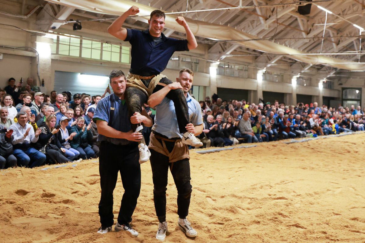 21.03.2026 Abendschwinget Langenthal, Schlussgangsieger Moser Michael mit Lebendpreis Alpaka Johny @Barbara Loosli