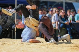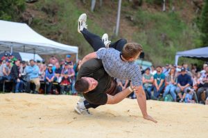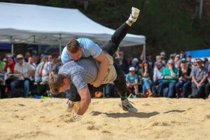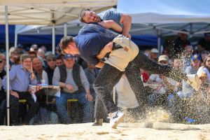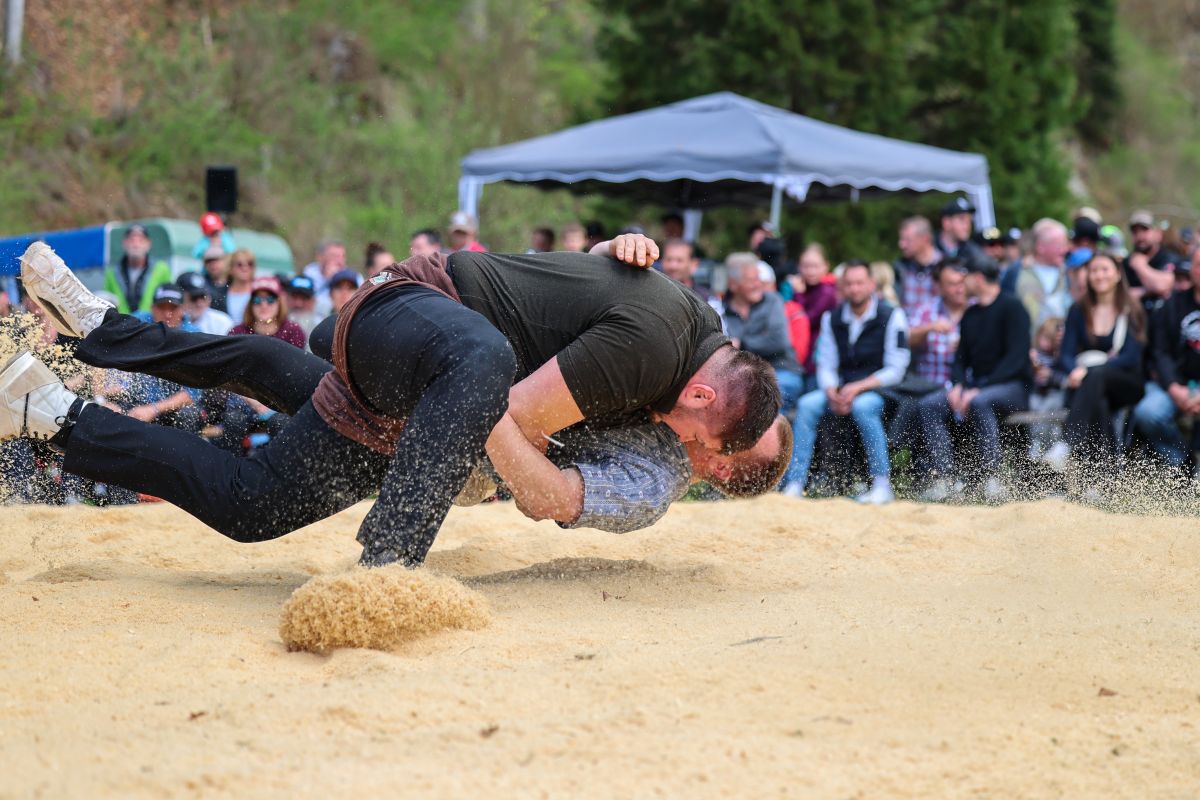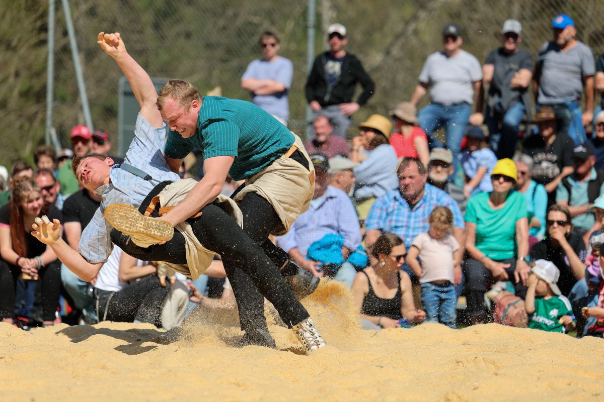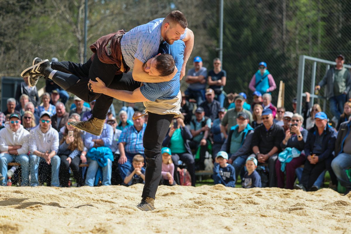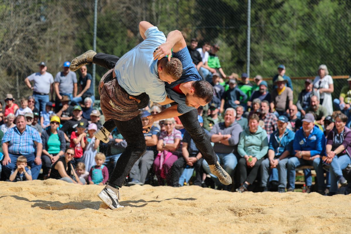 Der traditionelle Wislisau-Schwinget in Rüschegg konnte bei deutlich besserem Wetter als erwartet durchgeführt werden. Die attraktiven Bedingungen und die spannende Ausgangslage mit den vier Eidgenossen Michael Moser, Adrian Walther, Fabian Staudenmann und Severin Schwander im Teilnehmerfeld, sorgten für einen sehr grossen Zuschaueraufmarsch und eine stimmungsvolle Kulisse. Mit Spannung erwartet wurde gleich zu Beginn der erste Gang zwischen den momentan wohl stärksten Bernern, Michael Moser und Fabian Staudenmann. Sie sorgten mit einem attraktiven gestellten Gang für einen hochstehenden und spannenden Auftakt. Die grosse Leistungsdichte stellte die Einteilung vor Herausforderungen, viele Kranzschwinger mussten gleich mehrfach gegen Eidgenossen antreten, behaupteten sich dabei aber beachtlich.
