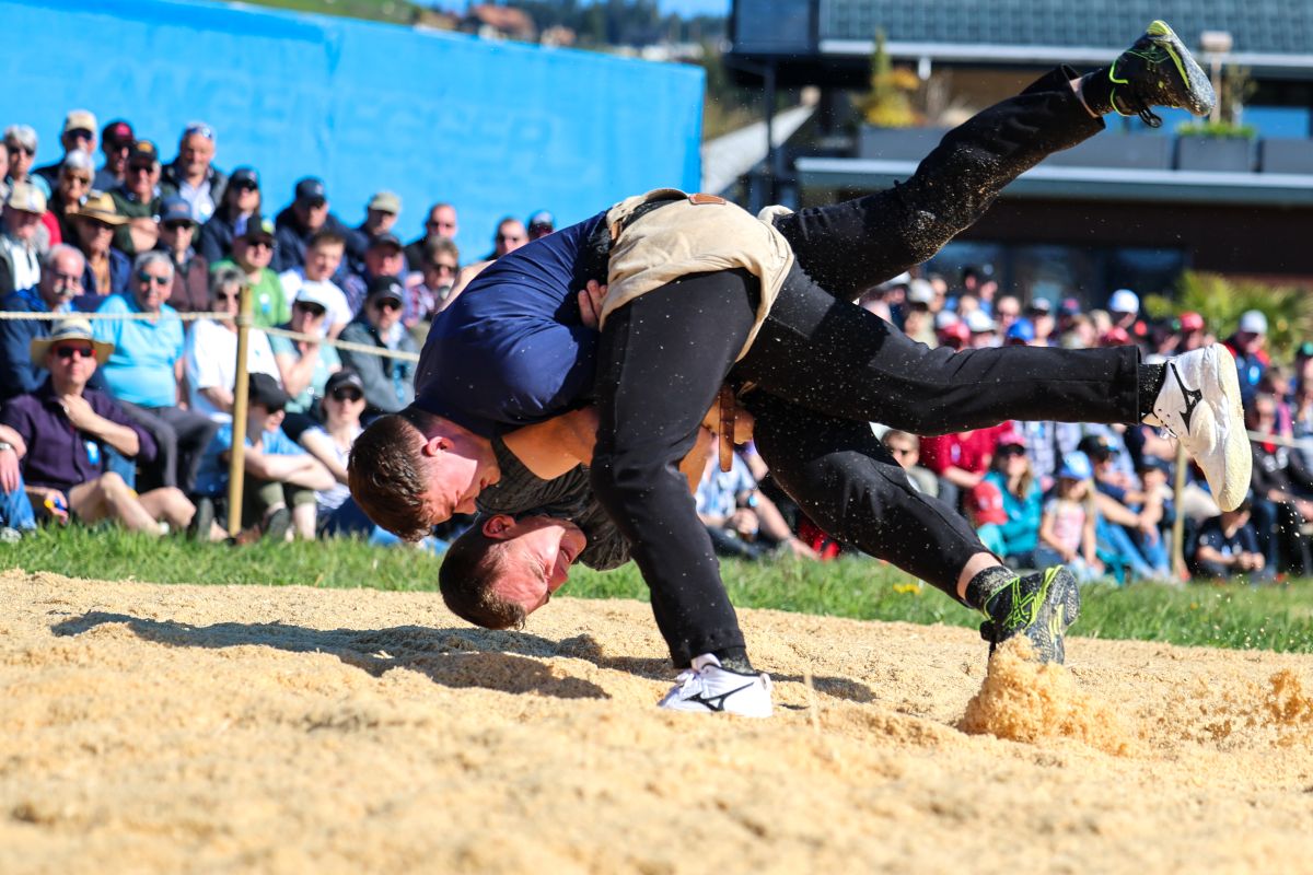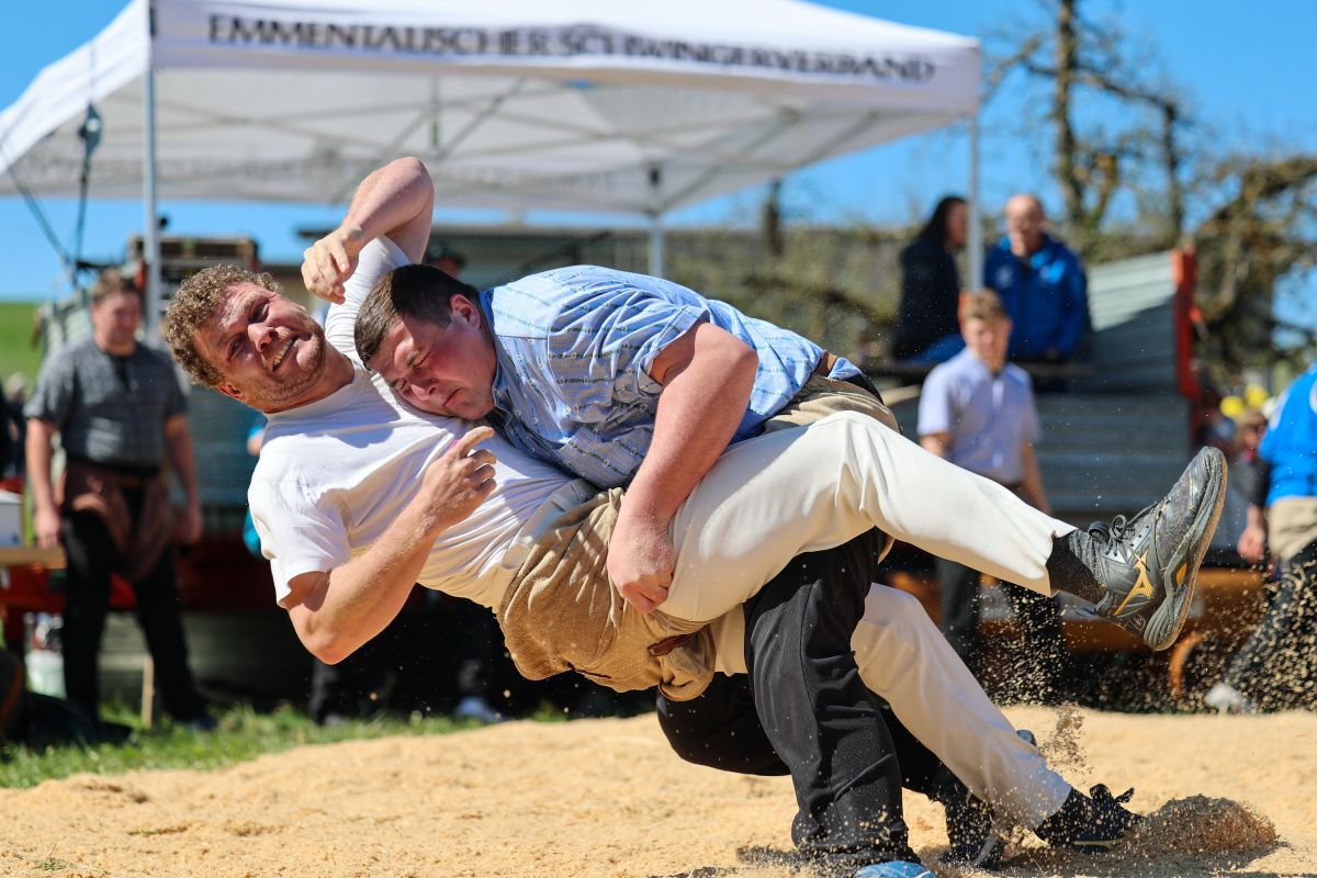 06.04.2026, Frühjahrsschwinget Zäziwil, Wyss Sven (l.) - Aeschbacher Matthias (r.)