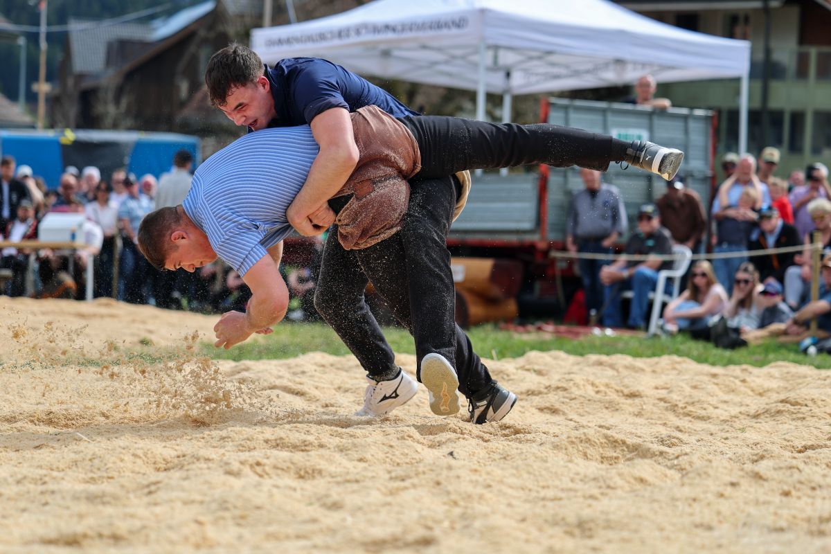 06.04.2026, Frühjahrsschwinget Zäziwil, Gasser Dominik (l.) - Graf Simon (r.)