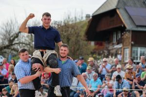 Sehr viele Zuschauer genossen das schöne und warme Frühlingswetter in Zäziwil mit spannenden Gängen und guter Festwirtschaft. Der Schlussgang gewinnt der Einheimische Michael Moser nach nur 59 Sekunden mit Innerem Hacken und Nachdrücken gegen den Truber Thomas Wüthrich.